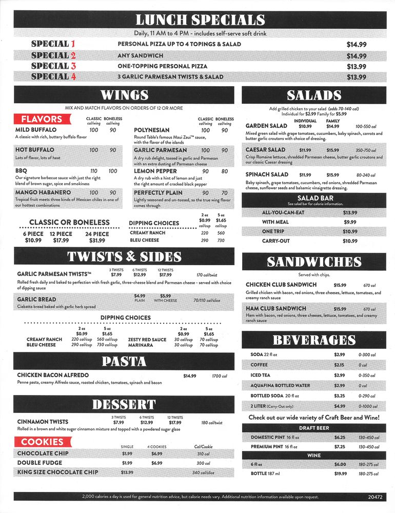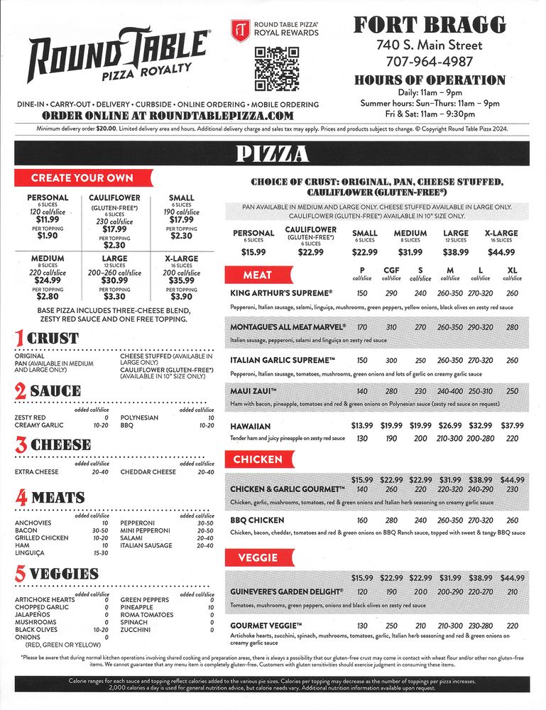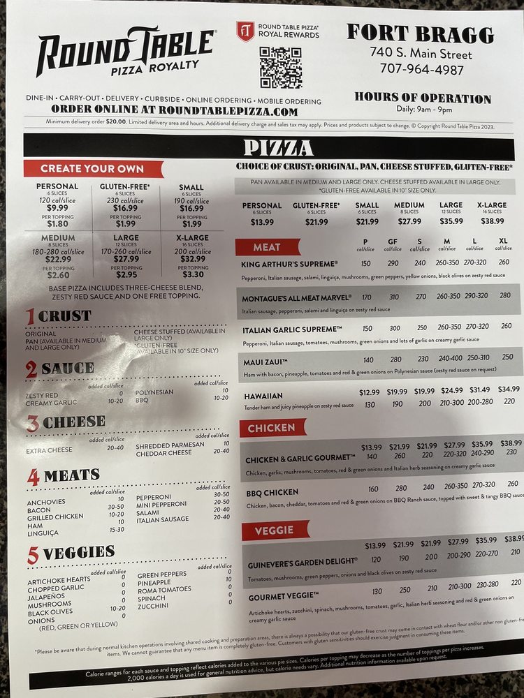Round Table Pizza Fort Bragg Menu (Update 2025)